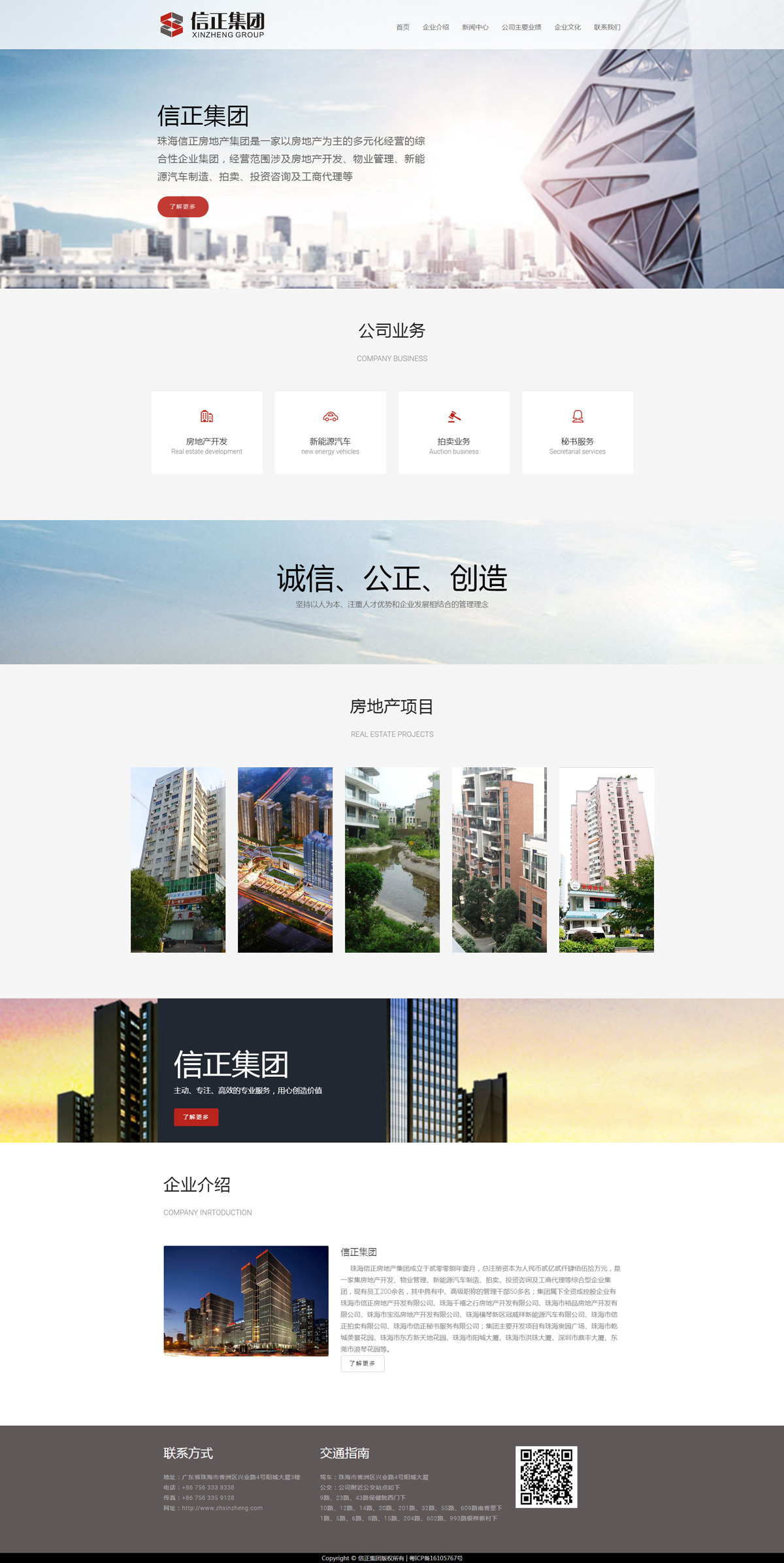 珠海信正房地產(chǎn)集團(tuán)成立于貳零零捌年壹月,總注冊資本為人民幣貳億貳仟肆佰伍拾萬元,是一家集房地產(chǎn)開發(fā)、物業(yè)管理、新能源汽車制造、拍賣、投資咨詢及工商代理等綜合型企業(yè)集團(tuán),現(xiàn)有員工200余名,其中具有中、高級職稱的管理干部50多名;集團(tuán)屬下全資或控股企業(yè)有珠海市信正房地產(chǎn)開發(fā)有限公司、珠海千禧之行房地產(chǎn)開發(fā)有限公司、珠海市裕品房地產(chǎn)開發(fā)有限公司、珠海市寶泓房地產(chǎn)開發(fā)有限公司、珠海橫琴新區(qū)冠威祥新能源汽車有限公司、珠海市信正拍賣有限公司、珠海市信正秘書服務(wù)有限公司;集團(tuán)主要開發(fā)項(xiàng)目有珠海奧園廣場、珠海市乾城美景花園、珠海市東方新天地花園、珠海市陽城大廈、珠海市洪珠大廈、深圳市鼎豐大廈、東莞市浪琴花園等。